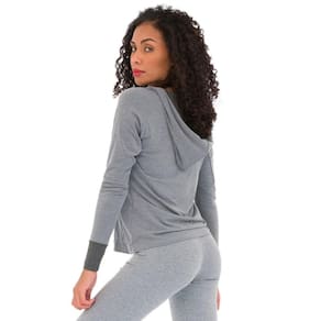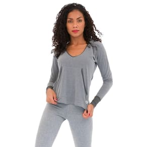 Camiseta T-shirt de manga longa com capuz adequada para atividades físicas e casuais.