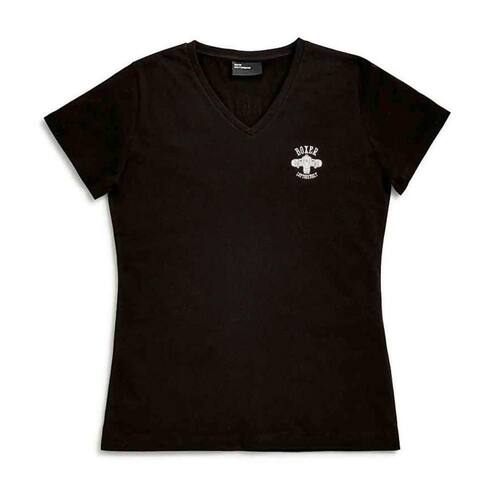 A camiseta Mechanikerin pertence ao equipamento básico de todos os fãs de motocicletas BMW que gostam de realizar os trabalhos em suas máquinas. T-shirt de algodão puro com motivo estampado na frente e inscrição Mechanikerin nas costas. Material: 100% algodão Cor: preto com estampas brancas Marca: BMW Motorrad