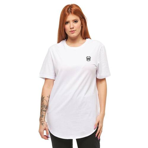 Camiseta Feminina Plus Size Longline Oversized Swag Manga Curta Wooks C1 - Branco - G6