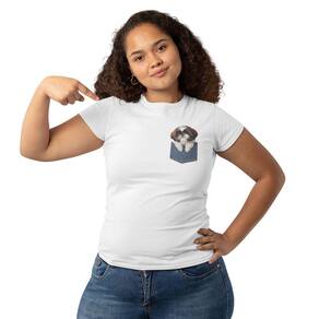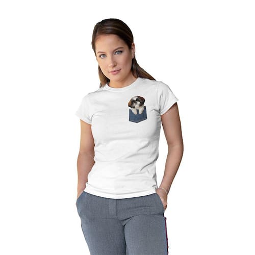 Leve um amigo fofinho para onde quer que vá com esta camiseta! Este adorável Shih Tzu está sempre pronto para sair do bolso e alegrar seu dia. Carinho garantido em todas as ocasiões!