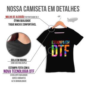 Para esta estampa utilizamos o DTF que é a mais moderna e tecnológica técnica de estampagem do mercado atualmente. Feitas com equipamento industrial de última geração, nossas estampas garantem cores vibrantes e alta durabilidade, com toque macio e confortável. Similares ao nosso silk-screen, não racham e não desbotam. Você vai adorar!!