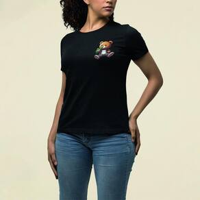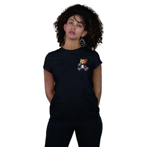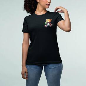 Esta camiseta é a definição de ursinho amoroso com um toque de rebeldia!