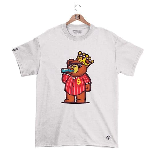 Camiseta Gola Redonda MáfiaClub URSO OSTENTANDO Streetwear fio 30.1 Penteado. - Branco - M
