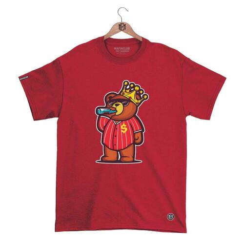 Camiseta Gola Redonda MáfiaClub URSO OSTENTANDO Streetwear fio 30.1 Penteado. - Vermelho - XG