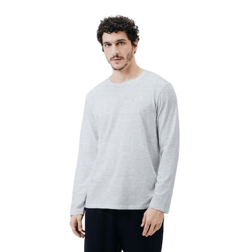 Camiseta Hering Manga Longa Cinza Mescla Básica Lisa Sem Detalhe