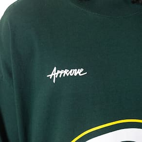 Mostre sua paixão pela NFL com estilo e autenticidade. A peça traz modelagem oversized, tecido de algodão macio e caimento confortável, ideal para composições modernas e urbanas. O design exclusivo da collab Approve x NFL destaca o escudo do Green Bay Packers, unindo o universo do streetwear à energia do futebol americano.
