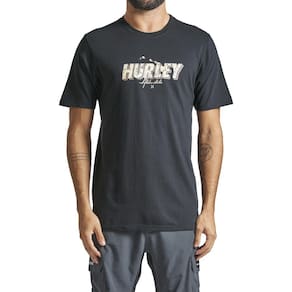 Camiseta Hurley silk, meia malha 30.1, gola rebatida, modelagem regular, estampa localizada a base d'água e etiqueta clips na barra.