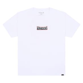 Camiseta Hurley feita em meia malha 30.1, gola rebatida, estampa localizada base d'agua e etiqueta clips ONE&ONLY na barra.