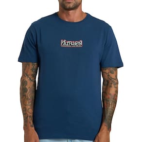 Camiseta Hurley feita em meia malha 30.1, gola rebatida, estampa localizada base d'agua e etiqueta clips ONE&ONLY na barra.