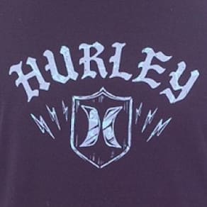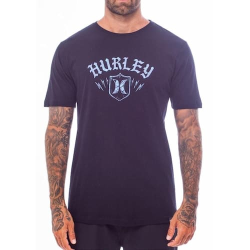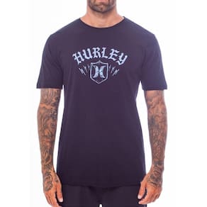 Camiseta Hurley feita em meia malha 30.1, gola rebatida, estampa localizada base d'agua e etiqueta clips ONE&ONLY na barra.