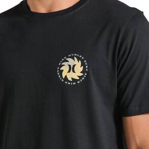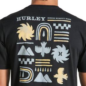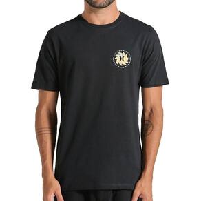 Camiseta Hurley feita em meia malha 30.1, gola rebatida, estampa localizada base d'agua e etiqueta Clips ONE&ONLY na barra.