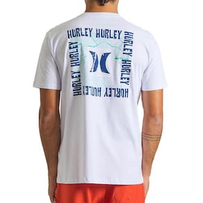 Camiseta Hurley feita em meia malha 30.1, gola rebatida, estampa localizada base d'agua e etiqueta clips ONE&ONLY na barra.