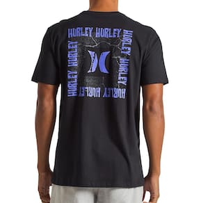 Camiseta Hurley feita em meia malha 30.1, gola rebatida, estampa localizada base d'agua e etiqueta clips ONE&ONLY na barra.