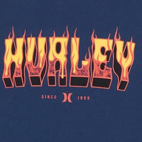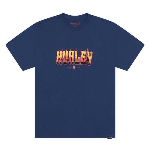 Camiseta Hurley feita em meia malha 30.1, gola rebatida, estampa localizada base d'agua e etiqueta clips ONE&ONLY na barra.