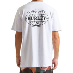 Camiseta Hurley feita em meia malha 30.1, estampa frente e costas, etiqueta clips na barra e silk interno.
