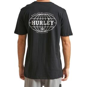 Camiseta Hurley feita em meia malha 30.1, estampa frente e costas, etiqueta clips na barra e silk interno.
