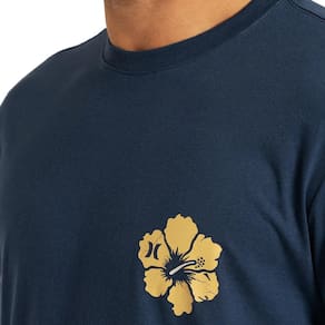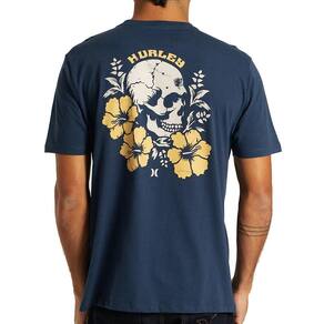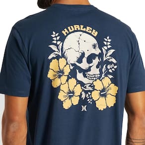 Camiseta Hurley feita em meia malha 30.1, gola rebatida, estampa localizada base d'agua e etiqueta clips ONE&ONLY na barra.