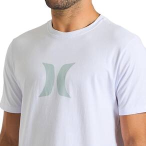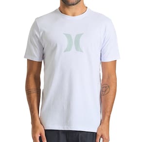 Camiseta Hurley feita em meia malha 30.1, gola rebatida, estampa localizada base d'agua e etiqueta clips ONE&ONLY na barra.