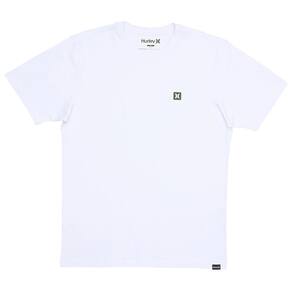 Camiseta Hurley feita em meia malha 30.1, gola rebatida, estampa localizada base d'agua e etiqueta clips ONE&ONLY na barra.