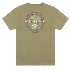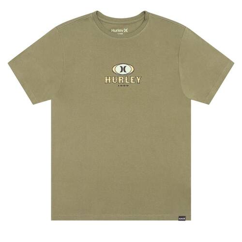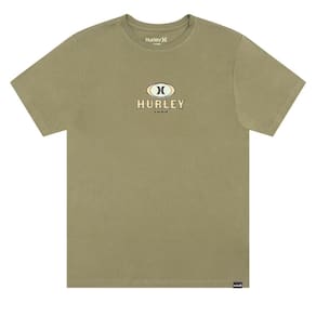 Camiseta Hurley feita em meia malha 30.1, gola rebatida, estampa localizada base d'agua e etiqueta clips ONE&ONLY na barra.