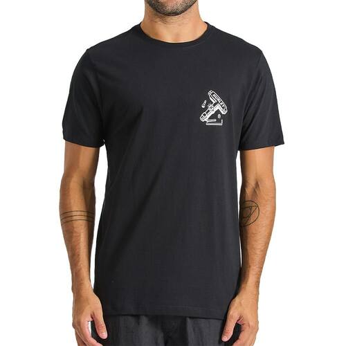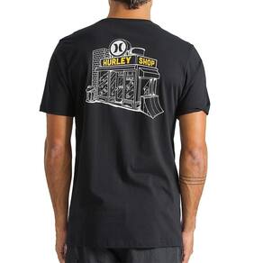 Camiseta Hurley feita em meia malha 30.1, gola rebatida, estampa localizada base d'água e etiqueta clips ONE&ONLY na barra.
