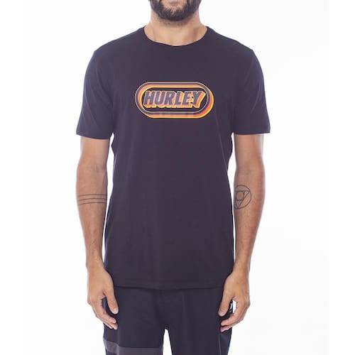 Camiseta Hurley meia malha 30.1, estampa frontal localizada, silk interno, modelagem regular e etiqueta clips na barra.