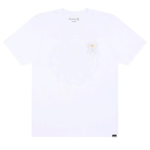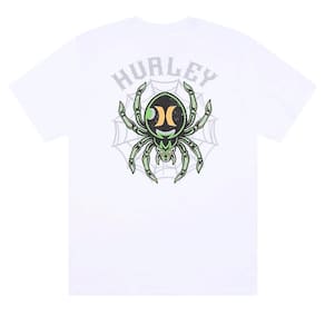 Camiseta Hurley feita em meia malha 30.1, gola rebatida, estampa localizada base d'agua e etiqueta clips ONE&ONLY na barra.