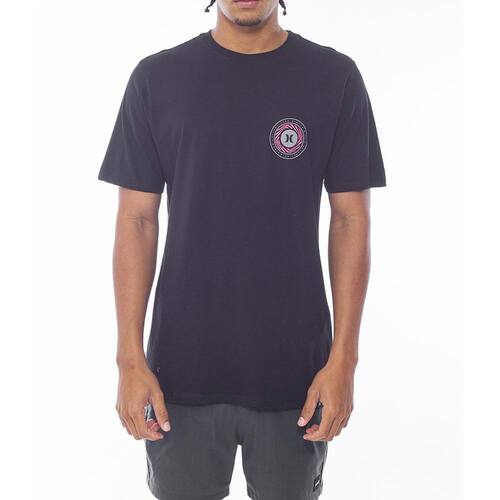 Camiseta Hurley meia malha 30.1, estampa frente e costas, silk interno, modelagem regular e etiqueta clips na barra.