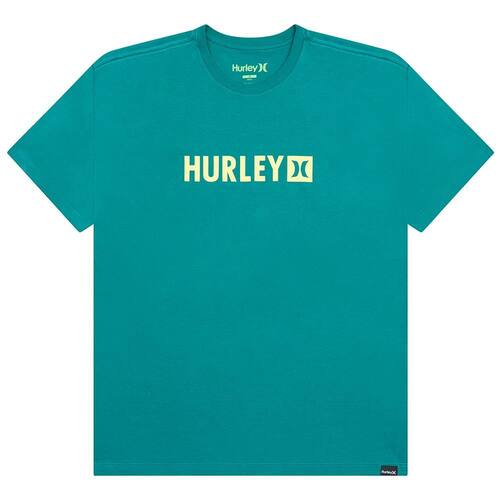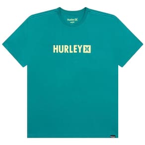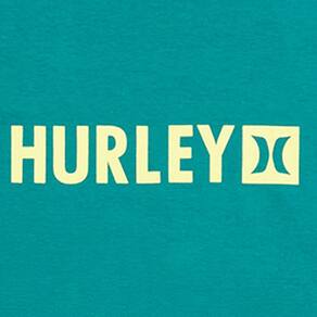 Camiseta Hurley feita em meia malha 30.1, gola rebatida, estampa localizada base d'agua e etiqueta clips ONE&ONLY na barra.