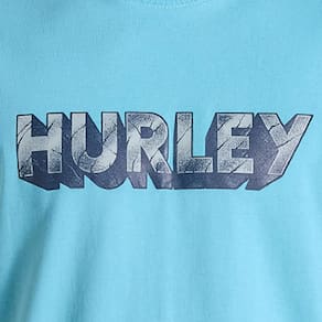 Camiseta Hurley feita em meia malha 30.1, gola rebatida, estampa localizada base d'agua e etiqueta clips ONE&ONLY na barra.