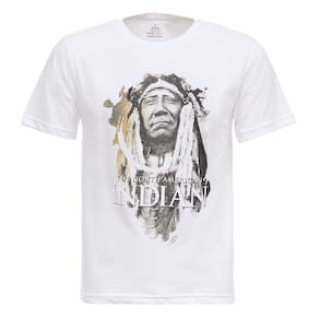 Camiseta masculina Texas Diamond fabricada em tecido 100% Algodão na cor Branca, possui mangas curtas, gola tradicional e estampa na parte frontal.