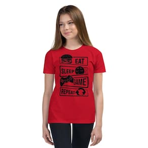 Fique pronto(a) para momentos únicos com a Camiseta - Eat, Sleep, Game and Repeat