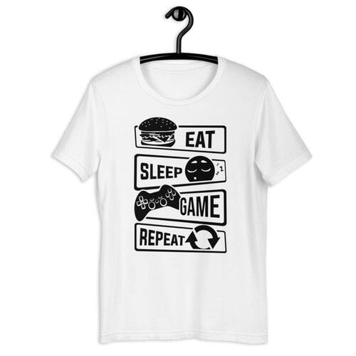 Fique pronto(a) para momentos únicos com a Camiseta - Eat, Sleep, Game and Repeat