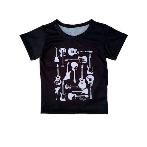 Camiseta Infantil Estampa Guitarras - Preto - 10