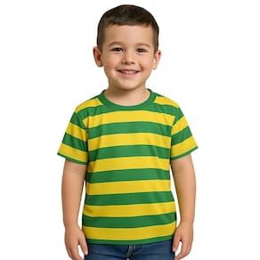 Camiseta Infantil Manga Curta Torcedor Brasil Listrada Verde Amarela, perfeita para os pequenos mostrarem orgulho e paixão pelo país com estilo e conforto. Ideal para dias de jogos, festas temáticas ou para o uso cotidiano, essa camiseta une design alegre e cores vibrantes que remetem diretamente ao clima de torcida brasileira.
