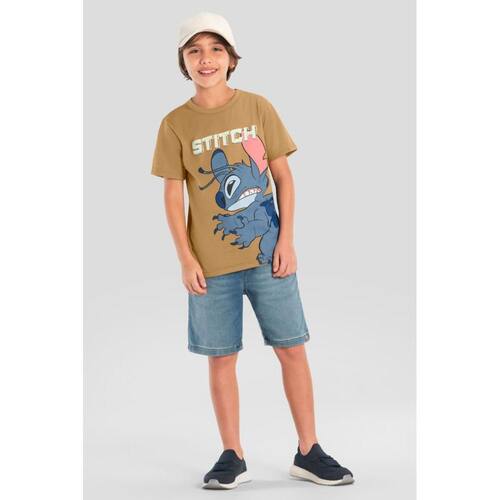 Uma camiseta feita para os pequenos aventureiros galáticos! Confeccionada em meia malha macia, essa peça traz uma estampa localizada do Stitch em gel, dando um efeito divertido e cheio de personalidade, como o nosso alienígena favorito em suas travessuras interestelares. Com manga curta e gola redonda, garante conforto para correr o dia todo, se tornando perfeita para os meninos aproveitarem o dia a dia com mais conforto e estilo.