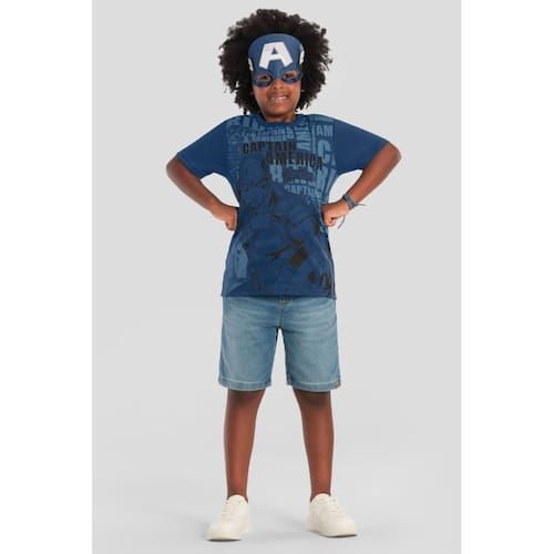 Deixe seu pequeno pronto para aventuras com a camiseta infantil menino em meia malha, que traz uma estampa incrível dos Vingadores. Com mangas curtas e gola redonda, é perfeita para os dias quentes. O acessório temático incluso adiciona um toque especial ao look. Confortável e estilosa, essa camiseta é ideal para o dia a dia e garante que seu filho se destaque com muito estilo. Combine com shorts ou calças para um visual descolado e divertido.