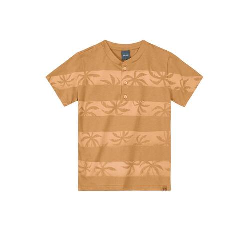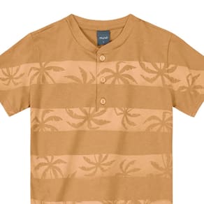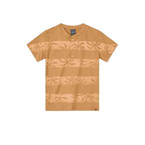 Deixe seu pequeno ainda mais adorável com a camiseta infantil menino confeccionada em malha, a peça possui mangas curtas, gola redonda padre com abertura por botões, estampa rotativa e patch decorativo na barra. Combine com as bermudas e calças da coleção. Aposte!