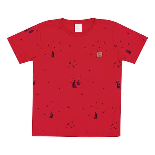 Básica e indispensável no guarda-roupa dos pequenos fashionistas. Camiseta em meia malha na cor vermelho com estampa de barquinhos, gola redonda com reforço, mangas curtas e etiqueta termocolante frontal. Combine com bermudas da coleção e crie looks incríveis para seu garotinho.