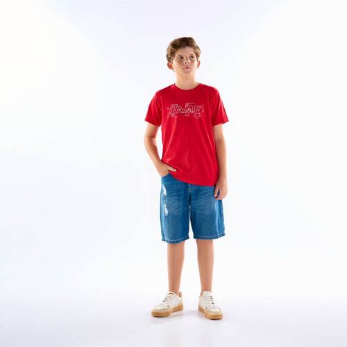 Para aqueles meninos modernos cheios de estilo e que curtem jogos, esta é a camiseta perfeita para eles! Confeccionada em tecido meia malha na cor vermelho, possuí manga longa, gola reforçada e estampa frontal gel em relevo com escrita "game". Ideal para curtir o dia de jogo com os primos!