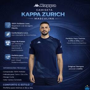 A Camiseta Kappa Zurich Masculina é a escolha ideal para quem busca conforto, qualidade e estilo tanto nos treinos quanto no dia a dia. Confeccionada em 100% poliéster leve, a peça proporciona excelente respirabilidade, secagem rápida e liberdade de movimentos. Com manga curta e gola careca canelada, o modelo conta ainda com tira interna que ajuda a reduzir o atrito, oferecendo um ajuste mais confortável ao corpo. Seu design clássico e versátil combina perfeitamente com produções esportivas ou casuais. A logo da marca é estampada em destaque, garantindo identidade e autenticidade ao produto. Ideal para treinos, práticas esportivas ou momentos de lazer, a Zurich entrega desempenho com um visual moderno e elegante.