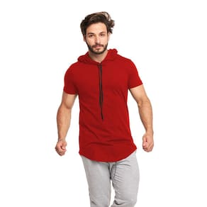 Camiseta Longline Manga Curta com Capuz Oversized C14 Wooks - Vermelho - P