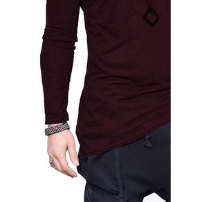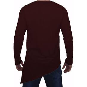 Camiseta Longline Oversized Corte Lateral Manga Longa - Vinho - G