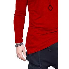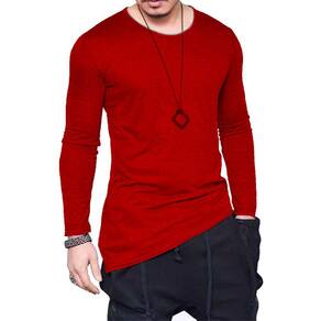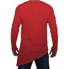 Camiseta Longline Oversized Corte Lateral Manga Longa - Vermelho - M