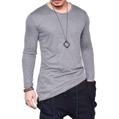 Camiseta Longline Oversized Corte Lateral Manga Longa - Cinza Claro - XG