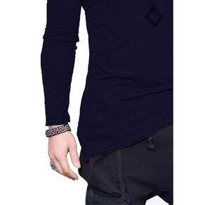 Camiseta Longline Oversized Corte Lateral Manga Longa - Azul Marinho - M