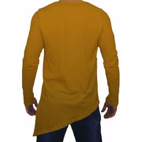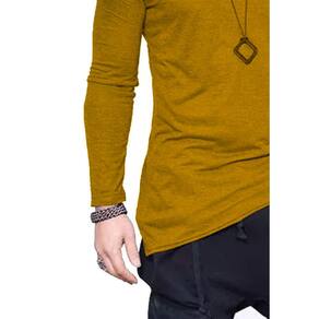 Camiseta Longline Oversized Corte Lateral Manga Longa - Amarelo Ouro - XG