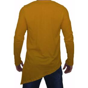 Camiseta Longline Oversized Corte Lateral Manga Longa - Amarelo Ouro - M
