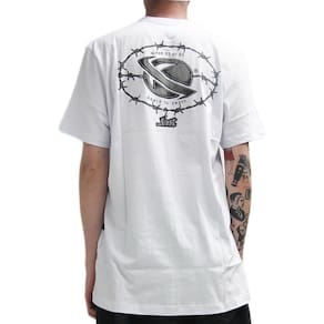 Camiseta Lost feita em meia malha 30.1, estampa no peito e costas e etiquetas personalizadas.