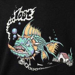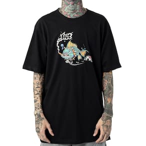 Camiseta Lost feita em meia malha penteada 30.1, estampa frontal e etiquetas personalizadas.